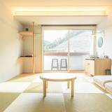 客室は全14室。全室畳敷きなので、素足でも過ごしやすいです。天城山麓の緑を望む客室や、里山でのワーケーションにもピッタリなデスク完備の客室など5タイプ。和室宿泊の場合は、自分で布団を敷くセルフスタイルです。