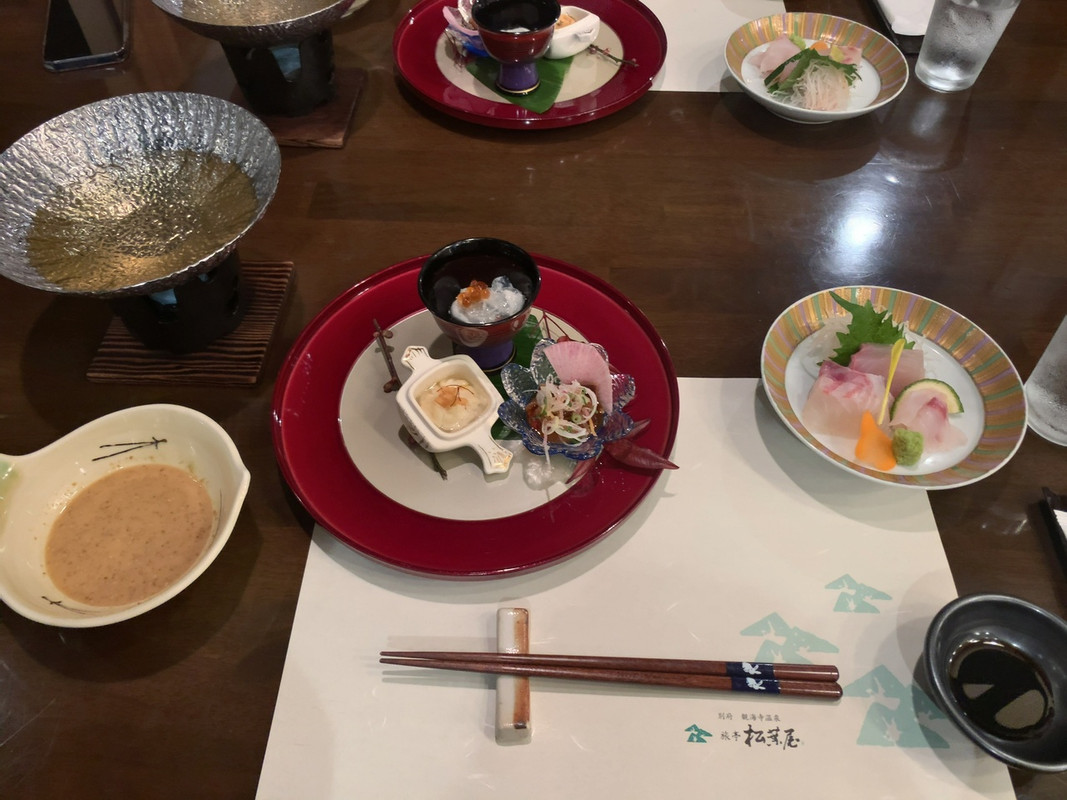 貸切風呂は4つあり予約なしで宿泊者は自由に入れます。お風呂の混雑状況もLINEでお友達登録したら確認できるようでした。それぞれのお風呂も広くてよかったです。夕食は品数も少なかったですが、1品の量も少なく全体的には足りなかったかなという印象でした。