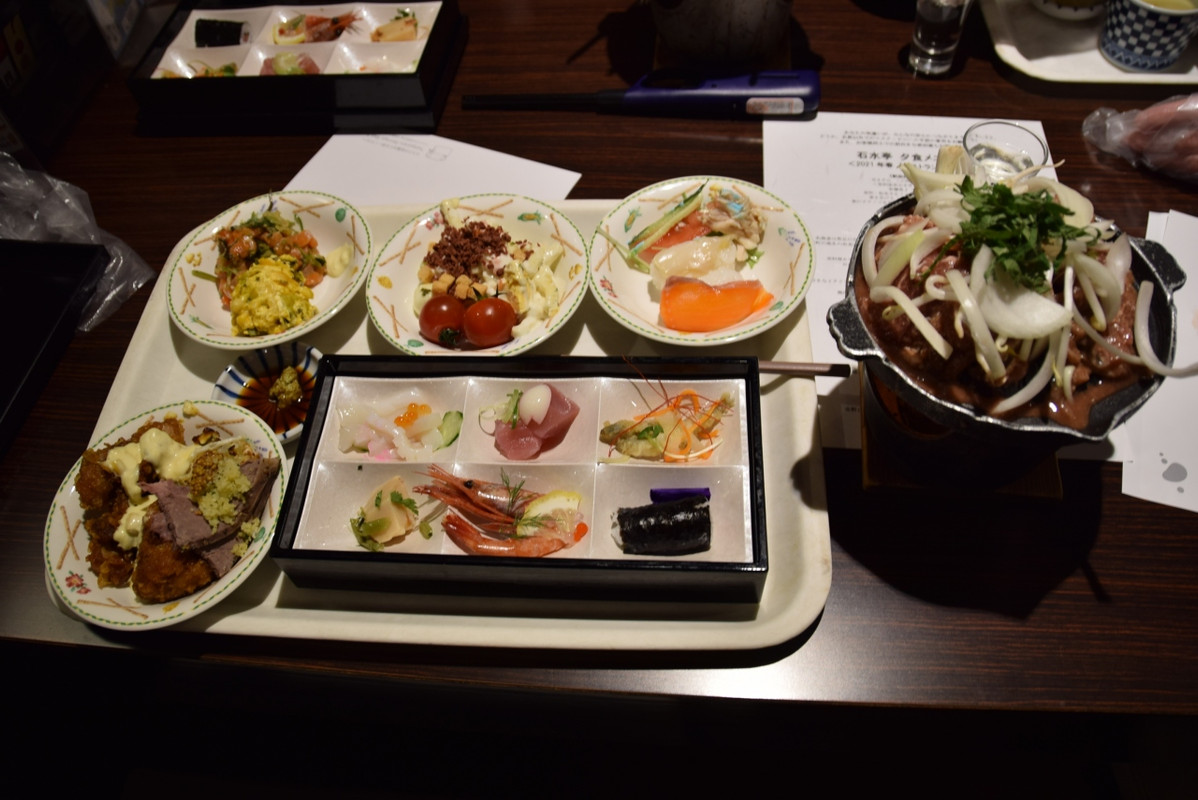 部屋は10畳の和室、他に床の間等もあるので、このタイプは今まで二人宿泊で狭いとは思わなかったが、今回、義父と3人で宿泊したところ、メチャクチャ狭く感じた。これは今後に向けて反省点だ。食事は夕食、朝食ともかなりの人数で、自分たちを含め想像以上の宿泊客がいたようだった。しかしスタッフの努力で、密を避けるため何とかギリギリ、コントロールされていた。なお60分飲み方があったので頼んだ。最初に日本酒をオーダーすると、予想以上に不味かったので、その後はワインにするとコレはまあまあ。温泉は良かった。1 / 3