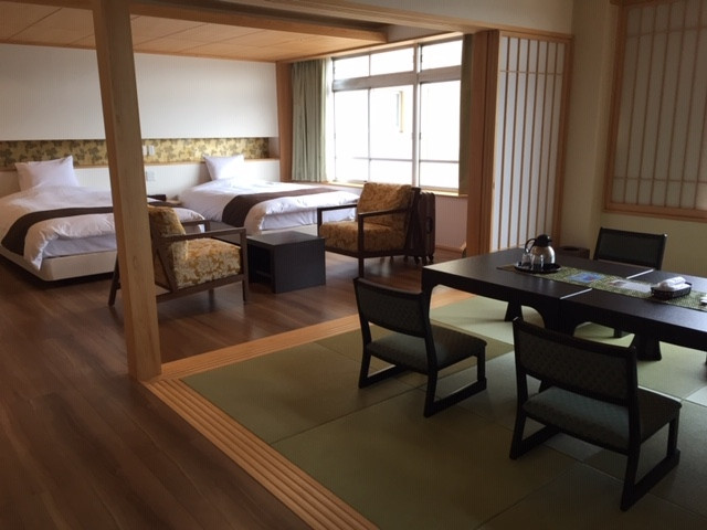 ベッドはシモンズでふかふか、和室がついた最高のお部屋でした。