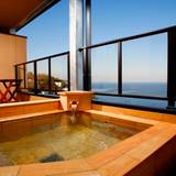 海を見渡す高台に建つ、わずか15室のみの隠れ家的な宿。18歳以上の大人だけが利用でき、ゆっくりとした時の流れを楽しめます。客室はすべて専用風呂付き。潮風を受けながら爽快な気分になれる露天風呂付き客室もあります。近海で獲れた鮮魚を使った「くずし懐石」を、部屋食でのんびりと味わって。