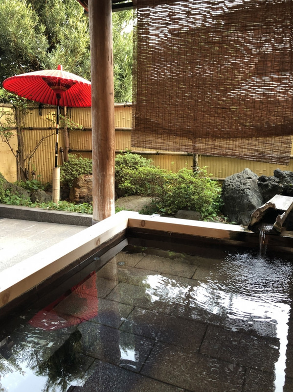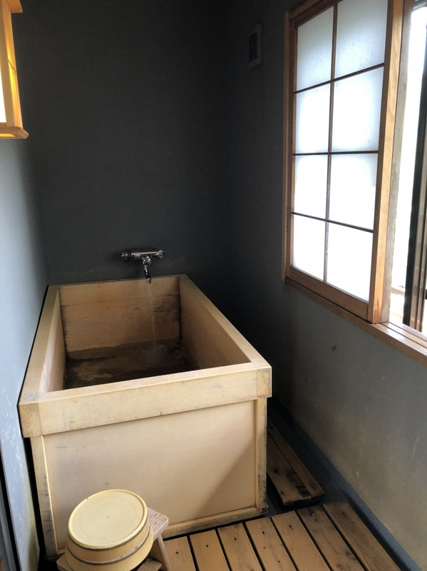 半露天風呂は、湯船がぽんと置いてあるだけで、窓は外から見えそうなので、開けれませんでした。
