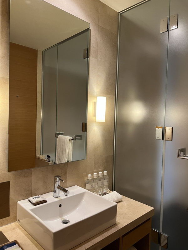 京都もずいぶんとホテルの値段があがっています。ここも例外に漏れずかなり値段が高いです。また、空室がないのでグローバリストでもなんでも会員種別問わずにアップグレード対応がめっきりなくなりました。以前いたスタッフの方もかなりいなくなっています。通常の部屋ですが、竹をいかした地下の景色も割と好きです。ただ、バスルームは段差があるので、そこは好き好きだと思います。交通の便は非常によく、京阪電車の駅もバス停も徒歩圏。荷物が少ないなら混雑するバスよりも歩いていったほうが気が楽です。片道ですが、京都駅からMKタクシーを使えます。