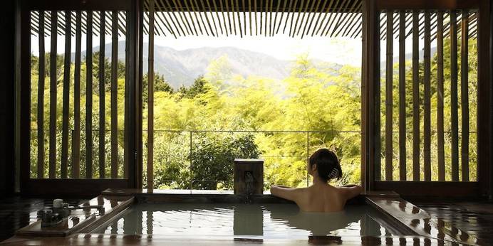 箱根・仙石原の自然に溶け込んだ「金乃竹 仙石原」。全室に温泉露天風呂を備え、朝夕ともに部屋食を楽しめるプライベートな宿です。“竹取物語”をコンセプトにしたお部屋は雰囲気たっぷり。竹林を望むラウンジや本格的なバーなど施設も充実しているから、滞在中ずっと非日常な時間を過ごせますよ。