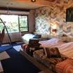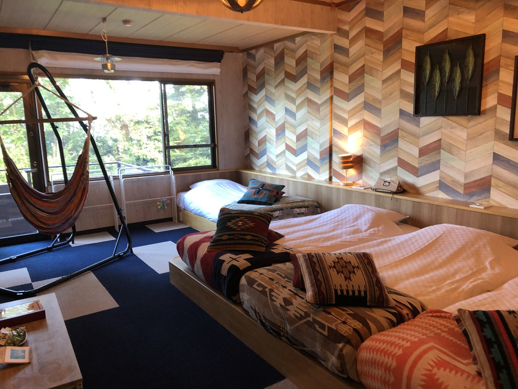 伊豆高原にある宿です。バリの風景をイメージした宿であちこちにカエルの像があります。お風呂は大浴場以外に貸し切りがいくつもあります(でも混んでいてタイミングを計る必要がありますが)。カラオケやドリンク、ゲームなども無料でできます。バータイムなどのイベントもあります。なので充実していていろいろ宿内で楽しめるので、ゆっくりするというよりは楽しむための宿といった感じでよかったです。