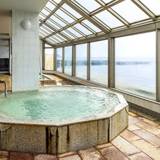 函館空港行の湯の川温泉バス停からすぐにホテルがあるので、空港帰りに日帰り温泉利用しました。日帰り利用は1000円でした。海岸添いに大きなガラス張りの浴場があり、露天風呂からは津軽半島もうっすら見えました。ジャグジーや寝湯あり、ゆっくりできました。