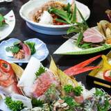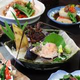 夕食時には、厳選食材を使ったヘルシーな料理が並ぶ「旬の和会席膳」をお部屋で満喫。黒酢、朝鮮人参、ローヤルゼリーで餡かけにした「夢笠子の姿揚げ」は宿の名物です♪