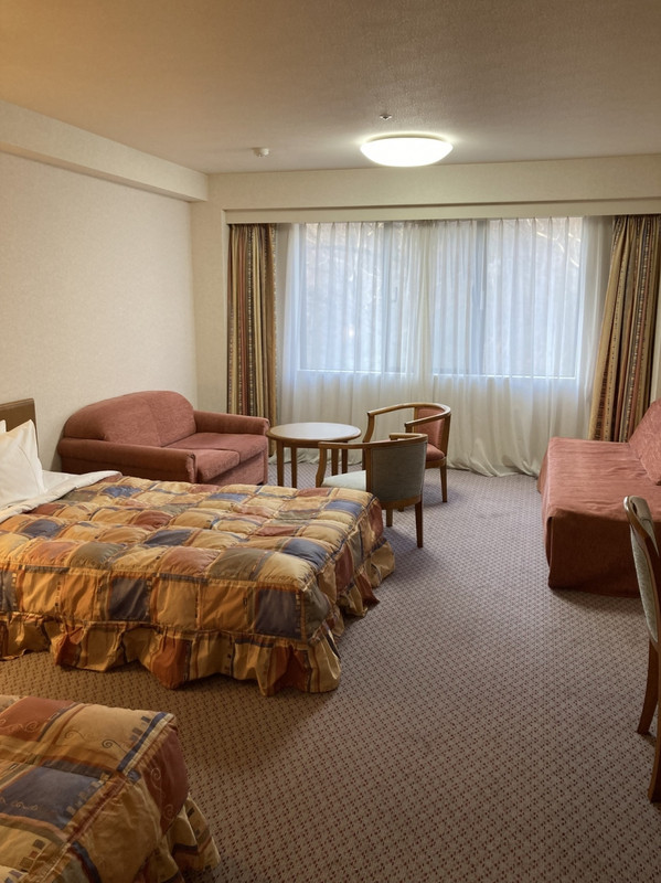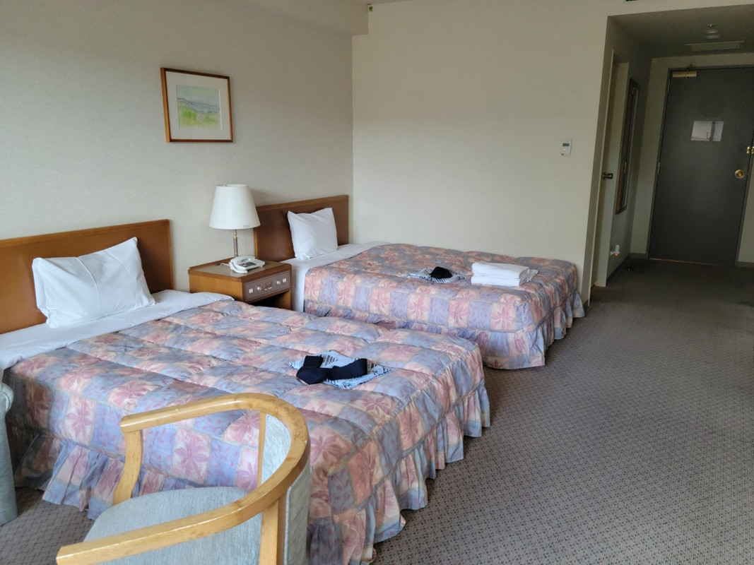 一方、わたしの泊まったスタンダードルームは改装されていませんでした。懐かしい昭和のイメージです。でも、広くて明るく、過ごしやすかったです。