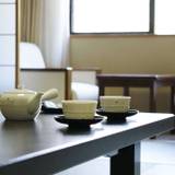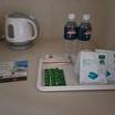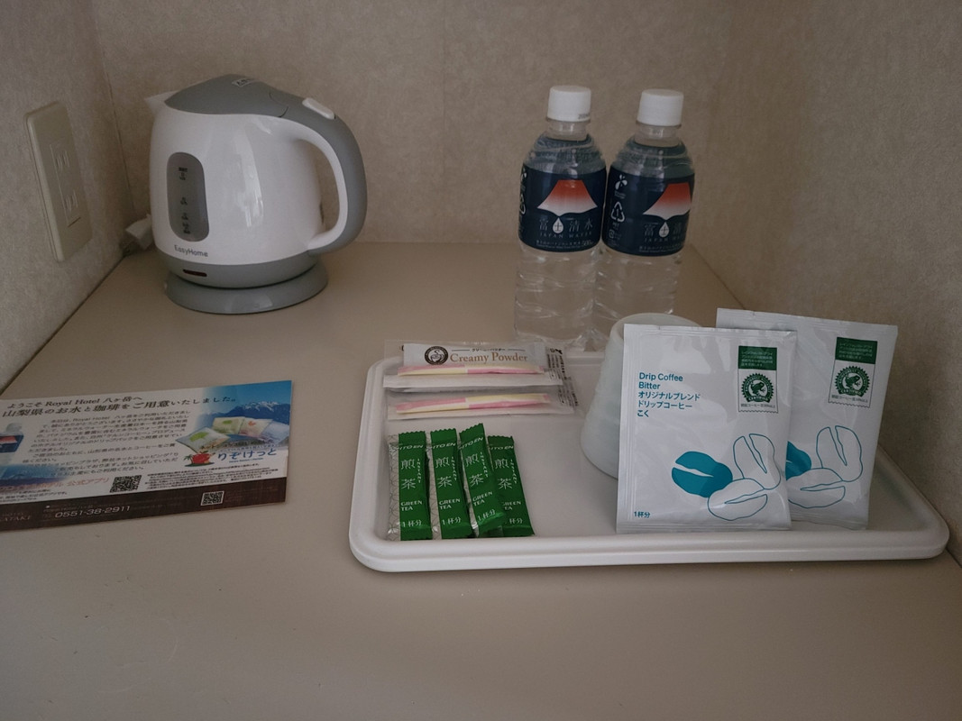 部屋にはペットボトルの水2本と粉の緑茶、ドリップコーヒーが置いてあって