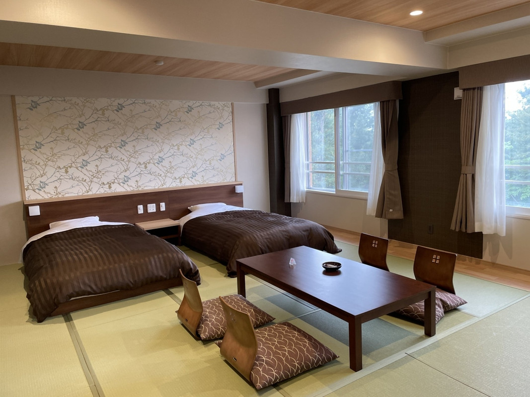 東北海道の温泉を巡る格安ツアーで宿泊しました。かなり古めの建物ですがきれいに整備されています。豪華さはありませんが、気球で有名な十勝川なので床の絨毯から浴衣まで気球の模様が入っています。部屋は広めの和室なのでゆっくりくつろげました。部屋からの眺望は特に望めませんが、北海道の森の中にいるような気分です。規模の大きなホテルですが、それに比例して大浴場も広いのでストレスなく入浴出来ました。さすが十勝川と思えるほど温泉の湯が良かったです。食事は大広間でのビュッフェスタイルでしたが、料理の種類も多く、ライブキッチンでは揚げたての天婦羅や焼きたてのステーキがどんどん調理されて行きます。刺身なども多く、自分でのっけ丼を作れるのも楽しいです。アルコール類の飲み放題が安いのにも驚きました。近所にはセーコーマートもありとても便利です。ちょうどオータムふぇづたの期間だったので行ってみましたが、歩いて10分もかかりません。オータムフェスタ自体は大したことありませんが、地産の小豆や金時豆が手ごろな値段で買えました。ツアーなので正確な値段は分かりませんが、コスパの良いホテルです。