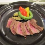 よもぎ入り胡麻豆腐、メカジキの馬鈴薯焼き、美崎牛のサーロインステーキなどの琉球会席でした。デザートが誕生日仕様になっていて嬉しかったです。