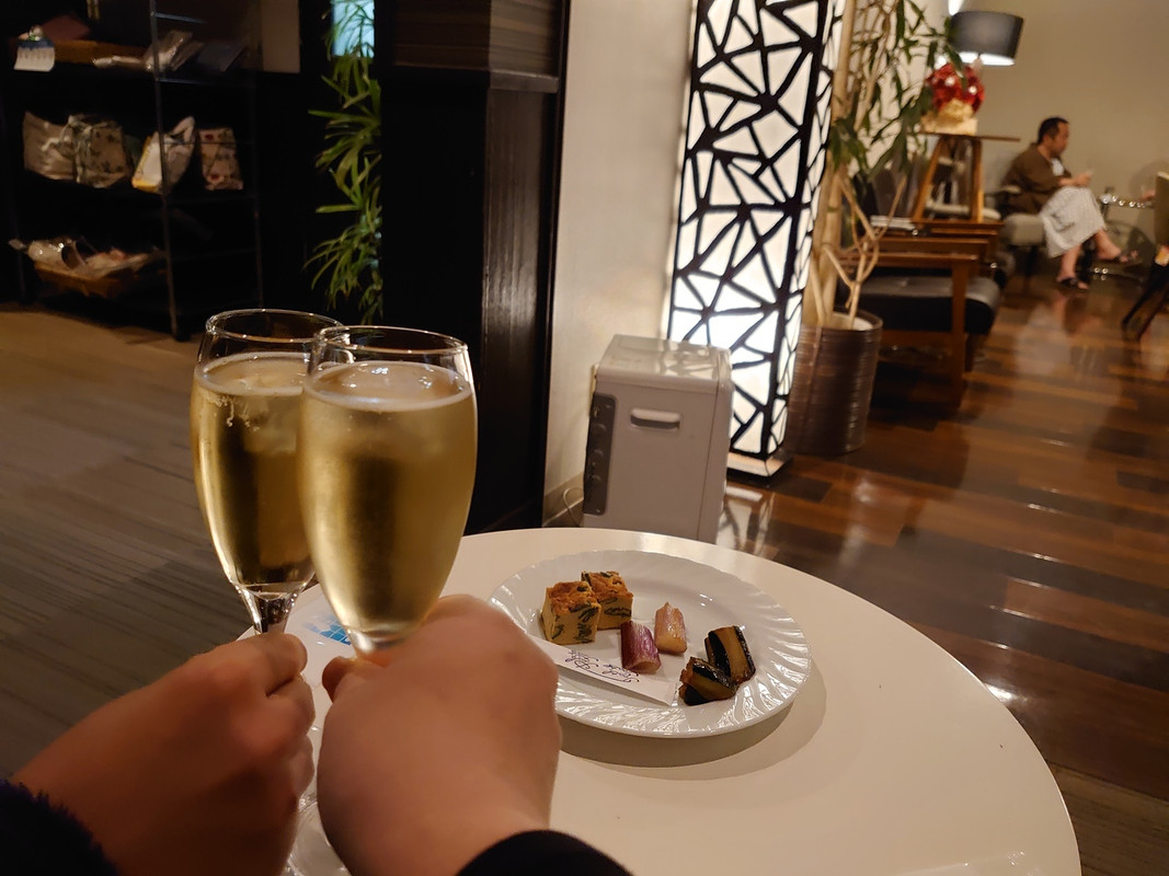 無料のサービスがたくさんあって、ウェルカムシードルや夕食時のアルコール、夜のバーも無料