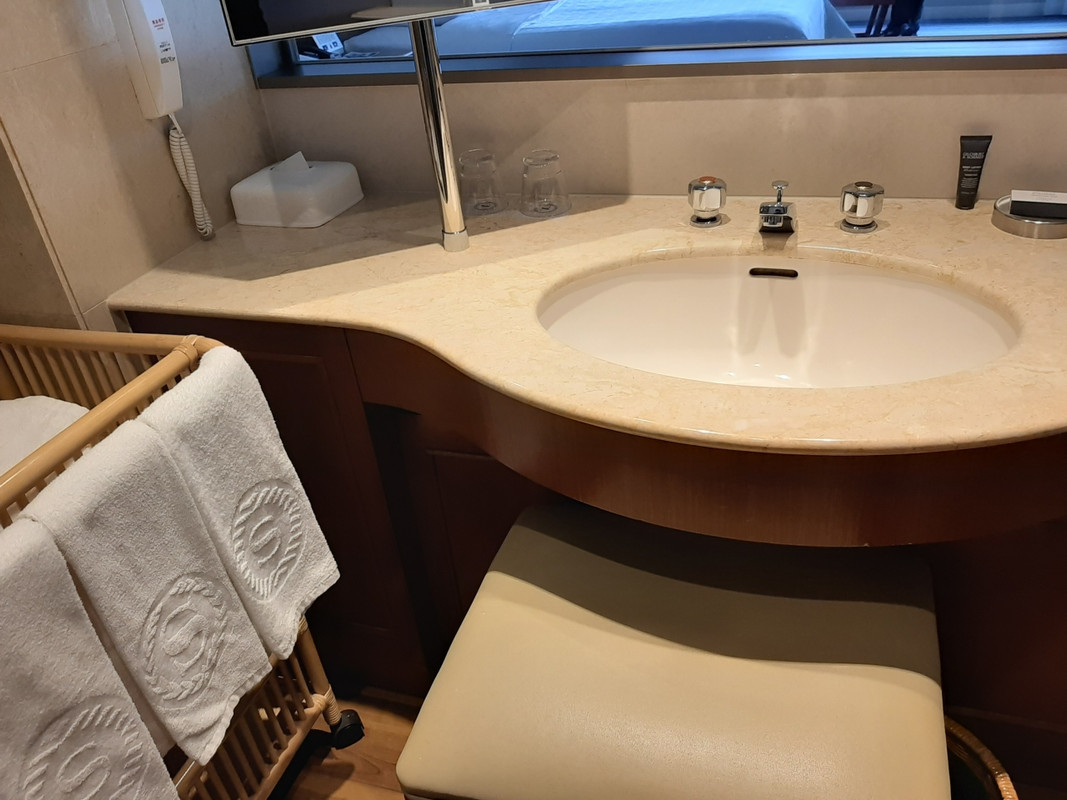 今回はデラックスツイン(50㎡)、オフシーズンのお陰か、34階にアサイン。さすがに高い。地上にあるものが小さく見える。