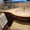 50㎡も広い。ベッドはセミダブル。内装は、砂浜のサンドベージュをイメージしたという落ち着いた色調。バスルームは、ベッドルームとの間がガラスなので明るい。洗面台の幅は1間半の広さ、シンクは1台。脱衣籠やスツールも備え、余裕。バスタブと洗い場の他にシャワールームもあり、トイレにも手洗いシンク。