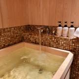 ヒノキの香りに満ちたバスルーム。湯をためて一日の疲れを癒しましょう。パジャマもあるので、温かくして寝ることができます。湯上りは冷たいドリンクやお茶でほっと一息。心地良いシモンズ製のベッドでおやすみなさい。