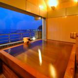 網代駅から徒歩約3分の「源泉湯宿 ⼤成館」は、青く輝く“網代湾”を望む絶景宿。6つのお風呂で源泉かけ流しの湯につかれ、網代港でとれた新鮮魚介を使った懐石料理を味わえます。露天風呂付き客室や貸切風呂など、プライベートな滞在を約束する設備やサービスもうれしいですね。
