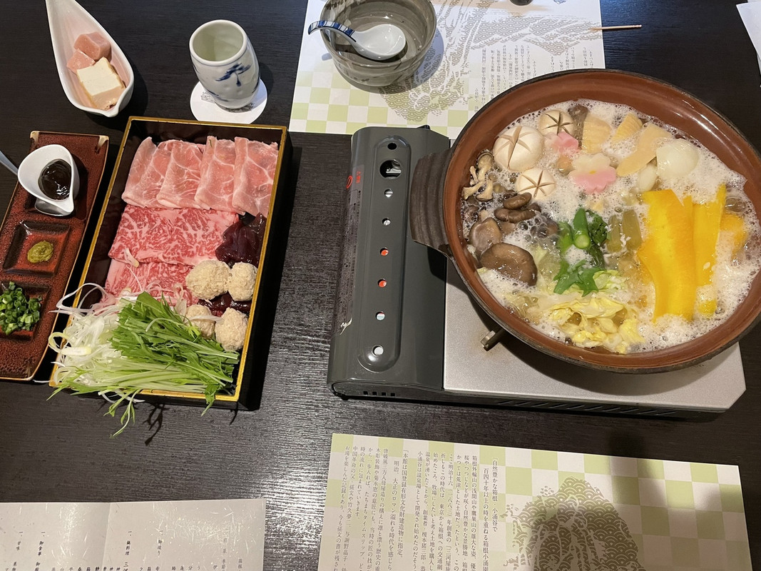 夕食のメインは店舗側の手間のかからない鍋でした。美味しかったけど、高い料金を払ってるのだから手間のかかったお料理をいただきたかったです。1 / 4