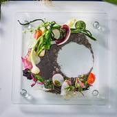 「DINING ROOM IN THE MAIKO」の夕食コース一例。淡路島や播磨の恵み“タカラモノ”をテーマにしたフルコースをいただける。