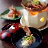 京都の嵐山、渡月橋の近くに佇む「旅亭 嵐月」。全3室の小さな宿です。客室露天風呂のテラスからは嵐山や大堰川を一望できます。一般客室にはヒノキの内風呂を備え、木と畳の香りに和情緒たっぷり。木の温もりを感じられる食事処では、目にも華やかな季節の会席料理をいただけます。大浴場では、ミネラル成分たっぷりの天然深層水を堪能できます。