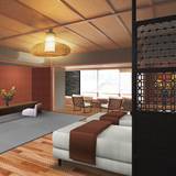 時代劇に出てきそうな入母屋造りの玄関を入り、帳場でチェックイン。ラウンジ「こてまり」でウェルカムドリンクをいただきながら、旅の疲れを癒しましょう。