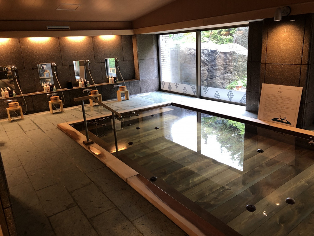 お風呂は露天風呂がないものの、大きなヒノキの湯船にヒノキのリンゴが浮かび、少し温めのお湯だったのでゆっくりできました。