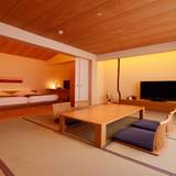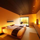 露天風呂付客室なら、チェックアウトの時間ギリギリまで温泉を楽しめます。室内との行き来がしやすいフラットな造りで、足湯代わりに楽しむのも気持ち良さそう。もちろん大浴場や貸切風呂での入浴も◎。最後までリラックスしましょ。
