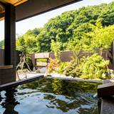 客室露天で美肌の湯をゆっくり堪能。庭園やテラスで寛げる渓流沿いの離れ宿
