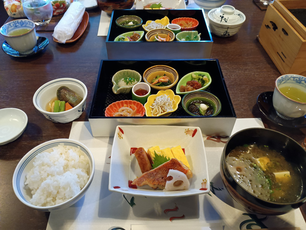 部屋の内風呂も温泉だったが、湯船への給湯は十分な勢いなのに、シャワーは弱く、しばらく出し続けてもぬるま湯がちょろちょろ出る程度で、浴室内を温めることもできずあきらめて、大浴場を利用した。せっかくの部屋付き温泉なのにあれでは冬は利用できない。
