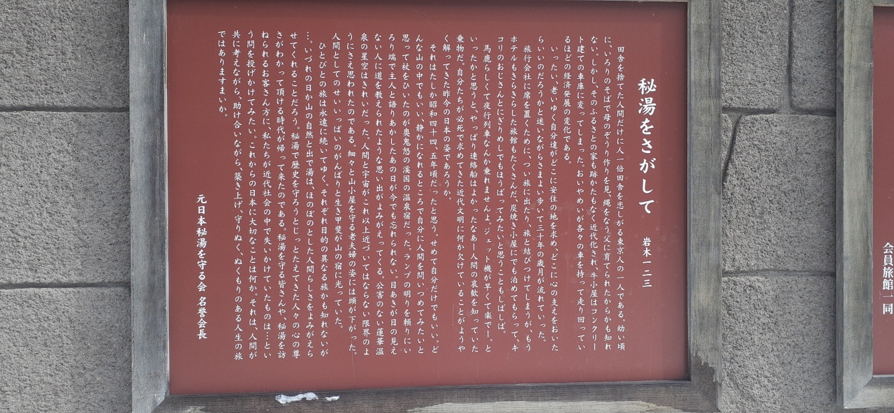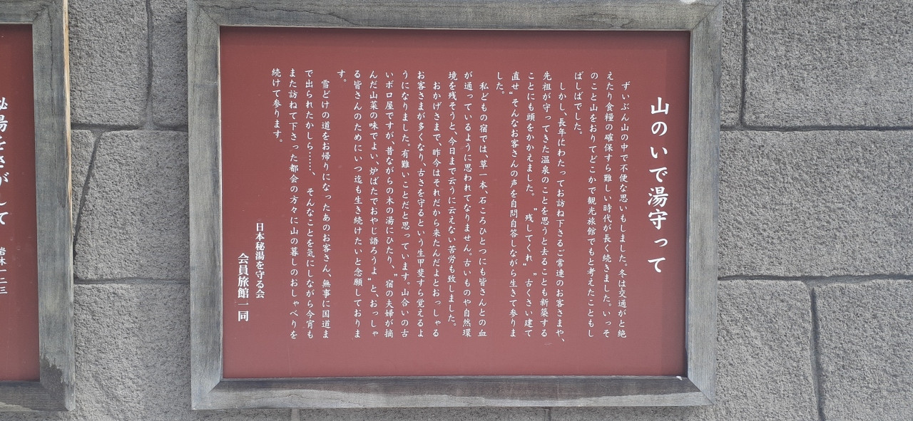 足元から温泉が湧き出ています。大きな法師の湯が有名ですが、上からも温泉が注がれているあたりは湯加減は良かったですが、離れると少し温泉が低かったです。本館に宿泊、湯治宿の雰囲気は良かったですが、古い建物で暖房の調節がうまくできず、苦労しました。