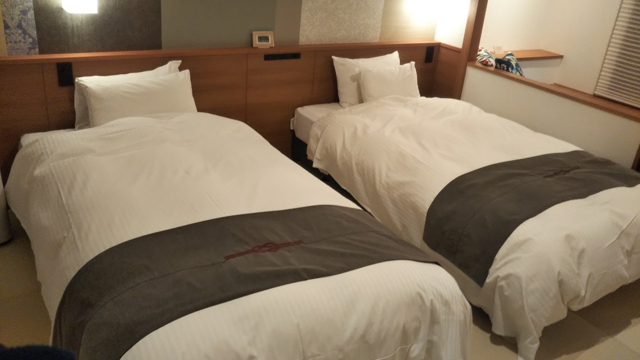 2、客室が和室の上にツインと小上りみたいなベッドがあっていい感じ。