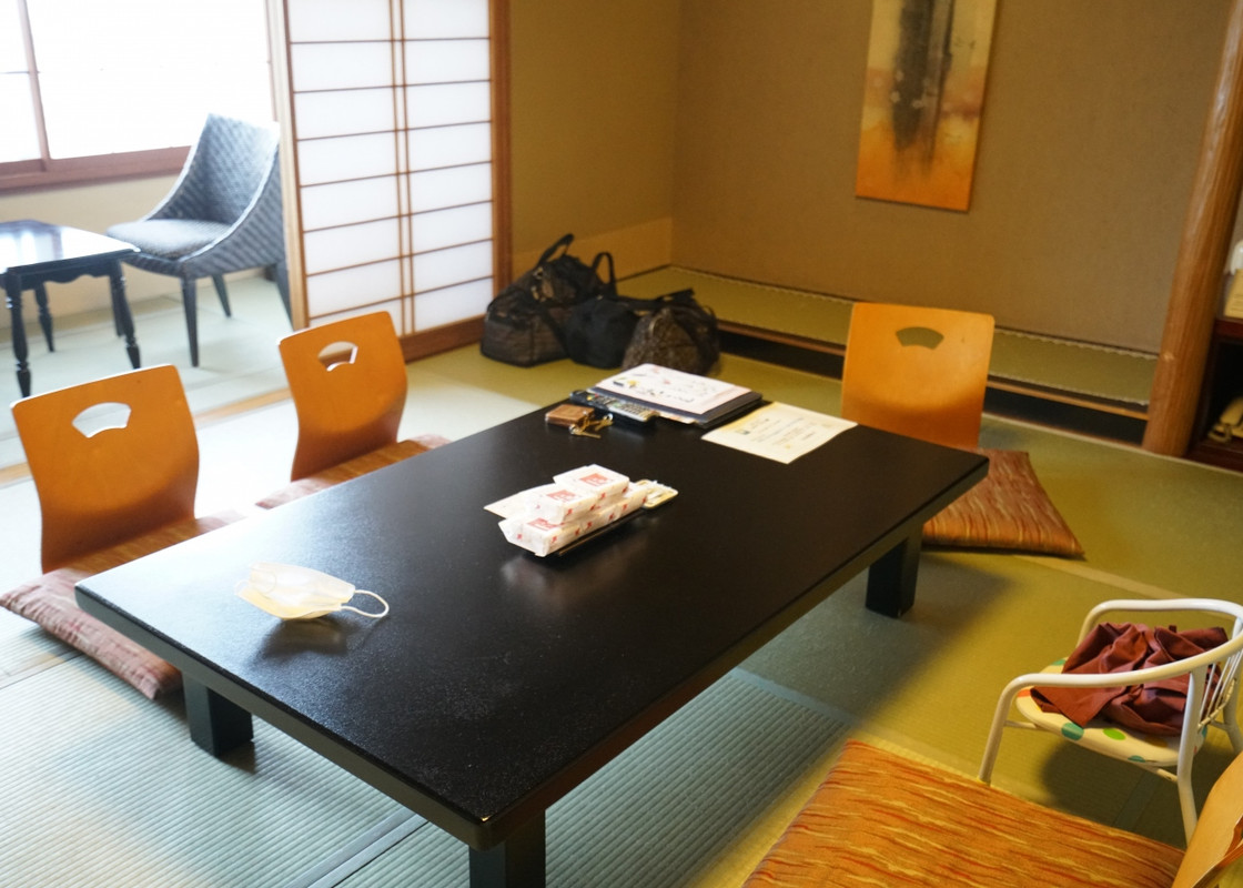 こちらの宿「くつろぎの邸 くにたち」は、中央に涼しげな庭がある和風のお宿。庭には大きな池があり、たくさんの鯉が泳いでいました。部屋は、10畳+6畳の和室2間。建物は少し古さを感じますが、季節を感じる中庭を眺めながら、ゆっくりくつろげる和洋室です。こちらの宿の風呂は、大浴場の「月の湯」、露天風呂付大浴場「夢ざくら」と3つの貸切風呂があり、加えて十五種類の薬石を床一面に敷き詰め、そこに温水を通し、温水だけで薬石に熱を加えミネラルを発生させた薬石浴「嵐の湯」がありました。大量の汗と老廃物を排出させて体の中から癒されます。「お肌がツルツルになった」と一緒に行った妹は言っていました。こちらの「嵐の湯」へも2回ほど行きました。食事も満足いくものでした。
