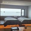 窓際にベットが配置されているので海が近い!空きがあったので、無料で貸切風呂も借りることが出来ました。貸切風呂と大浴場は非常扉を出て屋外のログハウスのようなところにありました。