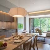 思わず広~いと声をあげてしまう客室。「アトリエ」以外はキッチン・家電付きです。2ベッド、3ベッド、温泉露天風呂付きのペントハウスなど多彩なタイプがあり、どのお部屋も高級感◎。別荘族の気分で優雅に過ごしましょう。