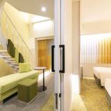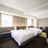 4人で一室利用したかったので、メゾネットタイプのお部屋があるこちらのホテルを利用しました。7階フロアはすべてメゾネットタイプのようで8階フロアがありません。居室スペースが少なく、ベッドが並んでいるだけなので、飲食をする際は狭く感じました。ビジネスホテルスタイルなので、サービスは最低限です。