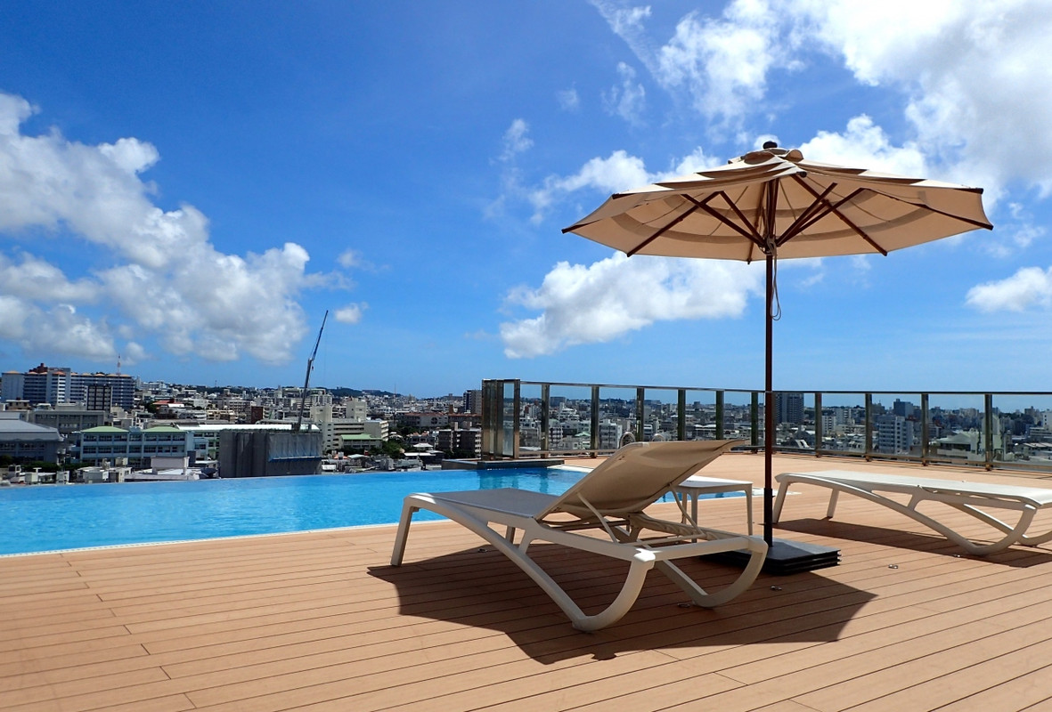 ここのホテルの一押しは最上階15階の那覇市内の360度のパノラマビューの楽しめるプレミアムラウンジと、沖縄唯一の3階にあるインフィニティプール。