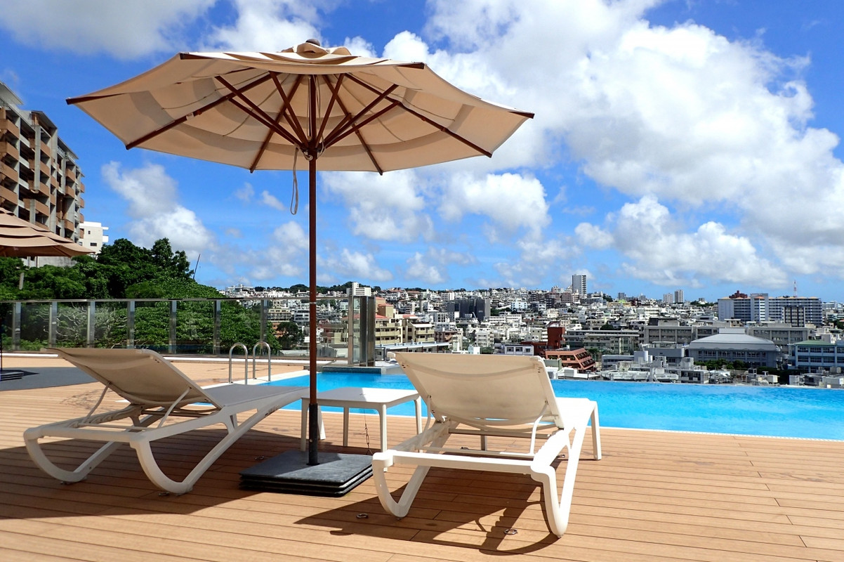 首里の街から那覇市内を一望できる。インフィニティプール付きのホテル