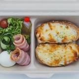 ホテルとカフェ「キャプフル」によるコラボ朝食を。クロックマダムとドリンクをセットで提供しています。朝食付きプランで予約するか、前日12時までの予約制です。定休日があるので、外食か自炊の計画を立てておくといいですよ。