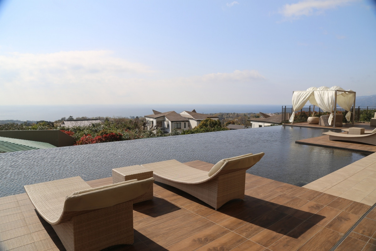 伊豆高原駅から車で約5分の高台に佇む「亀の井ホテル 伊豆高原」は、全室オーシャンビューの絶景宿。「水盤テラス」でリゾート気分に浸り、露天風呂付き客室や大浴場でゆるりと温泉浴を。伊豆食材たっぷりの創作和食コースと、夜鳴き担々麺などの無料サービスも魅力。特別感溢れる温泉旅が叶います。