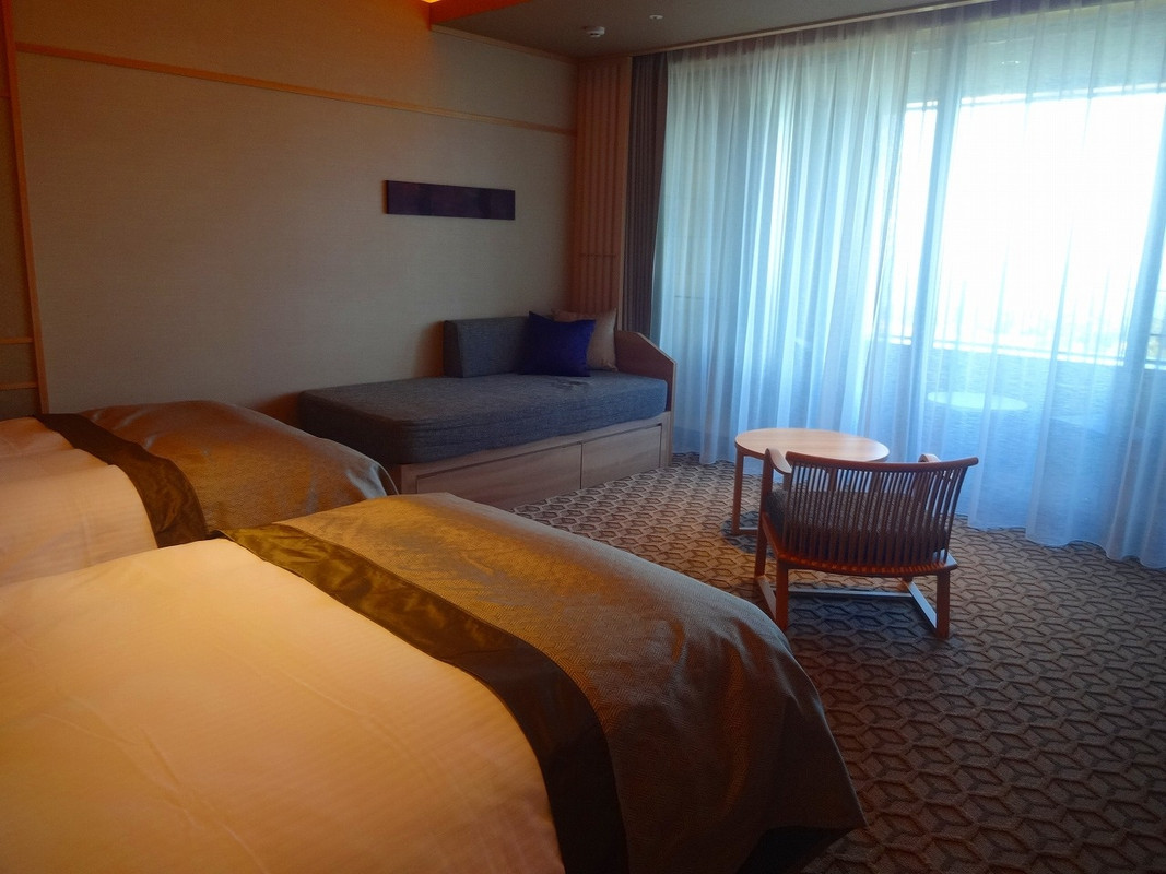 お部屋は和モダンのようなテイストの洋室で、オーシャンビューです。