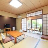 熱海観光で網代温泉の松風苑に泊まりました。幕末から明治にかけて活躍した日本赤十字社創始者で初代社長の佐野常民伯爵の別荘があった場所で、日本赤十字社の保養所でした。そのため客室は多少古かったですが、館内の清掃は行き届いていました。スタッフの挨拶や対応も温かく気持ちよく泊まることができました。西館と東館の間の斜面に自然を生かした広い庭園があります。ツバキ、桜、しだれ桜、柑橘など様々な樹木があり、苔が生えている場所もありました。草地広場の周りにヤシの木があり、ベンチに座って木々を眺めほっとしました。金目鯛姿煮の付いた夕食を予約しました。部屋食で元気のいいスタッフが配膳をしてくれました。料理は薄味で、金目鯛姿煮は甘口のさっぱりとした味付けでした。普段から薄味の自分たちにちょうどいい味と量でした。西館の角部屋で隣が空室だったので静かでのんびりできました。温泉は打たせ湯のある温めの浴槽とやや熱めの浴槽とその中間の温度の露天風呂があります。夜中の30分間の清掃以外、いつでも入浴できたのがよかったです。緑に囲まれた静かな温泉宿でした。