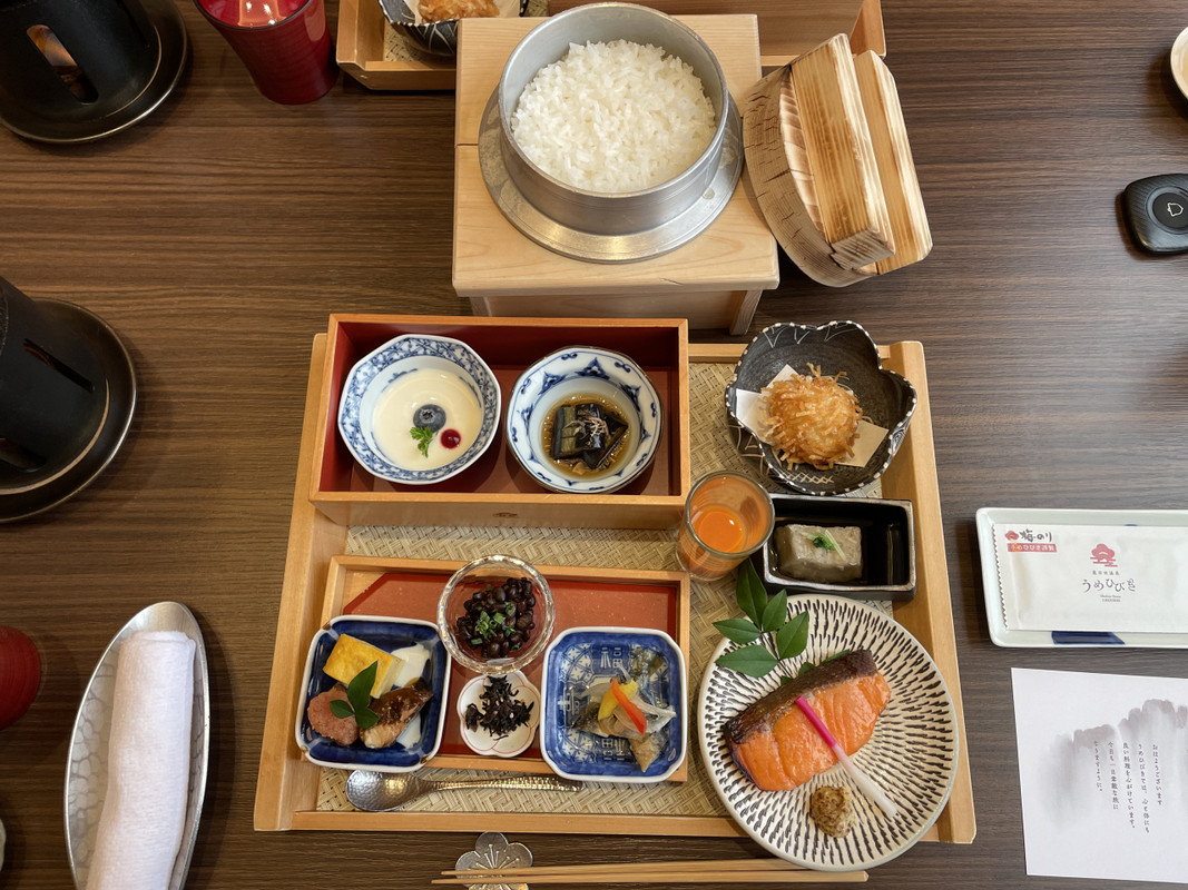 「奥日田温泉 うめひびき」は、大分県日田市の奥座敷・大山に建つ温泉旅館です。コンセプトは「梅づくし温泉」。館内に散りばめられた梅モチーフや併設の梅酒工場、梅酒の食前酒から始まる和食中心の夕食など、梅を感じながら滞在できます。響渓谷を望むテラスや温泉の大浴場も楽しみ、癒しの旅を。