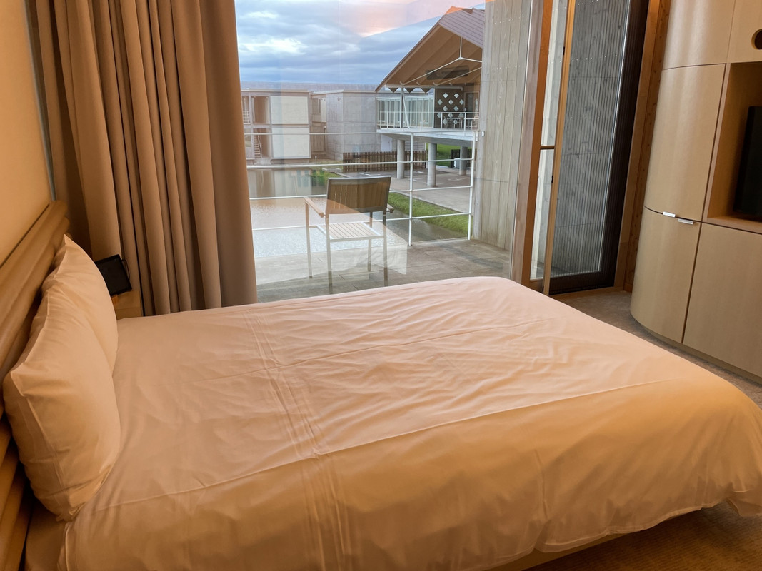 建物の見た目は個性的ですが、部屋はシンプルで高級感はありません。