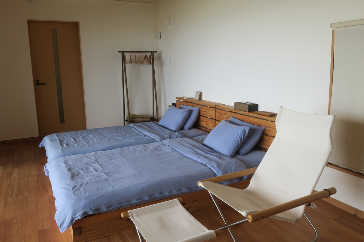 室内のインテリアはシンプルで無印良品な印象。「海辺に建つ無印良品の家」とでも名付けたくなるような(笑)