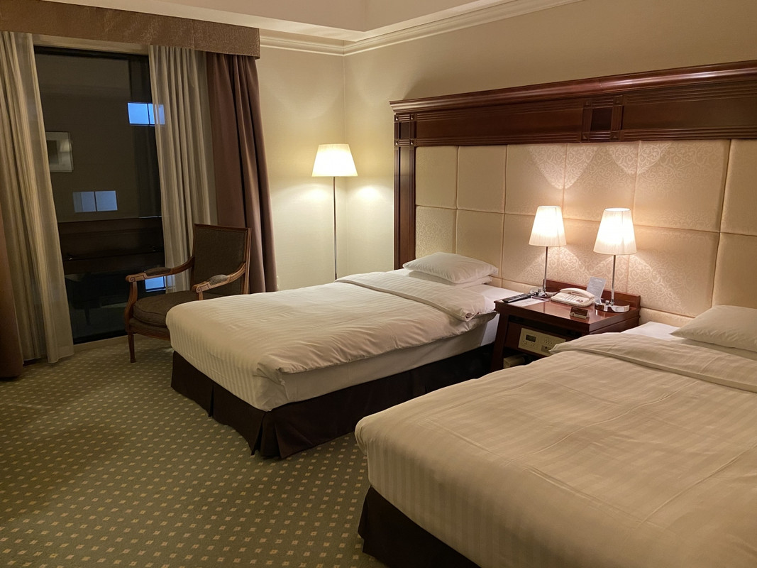 客室も広いのですが、やや古さが目立ちます。バスルームは広いのですが、洗面台・トイレが一緒にあるので、結局ビジネスホテルと同じという不思議なつくり。