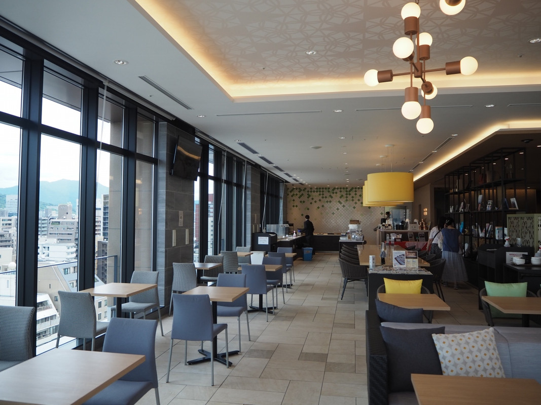 フロント階(14階)に、宿泊客が無料で深夜帯以外は自由に利用できるインターゲートラウンジが準備されていて、一日中ホテルで過ごせる感じです。屋外テラス席も利用できます。