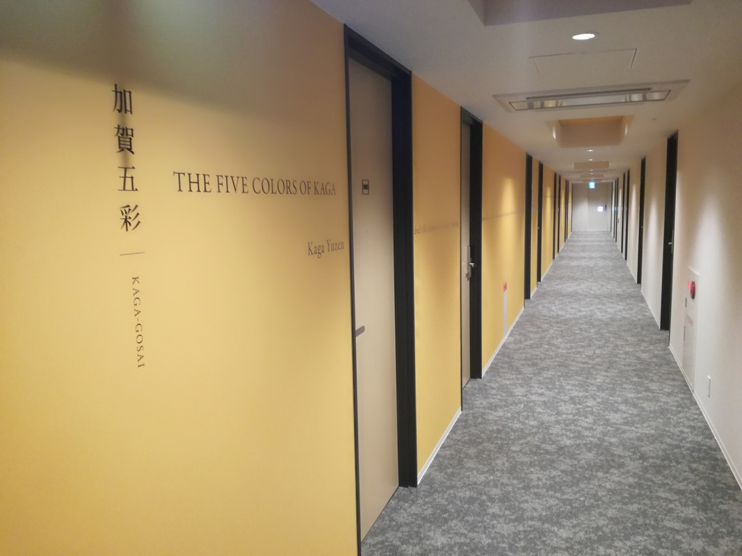 1Fにはビジター利用にも適したカフェ「Bankers Street」があり、宿泊者にとってはラウンジ代わりに使える雰囲気、朝食もそちらで頂きました。大きくはありませんが露天風呂付大浴場も備え、客室もダブルまたはツイン以上と、観光客にとっても使いやすいホテルです。加賀友禅の美しさを特徴づける「加賀五彩」と呼ばれる5色のカラーリングを取り入たモダンなつくりも印象的でした。
