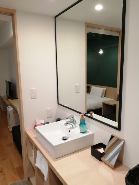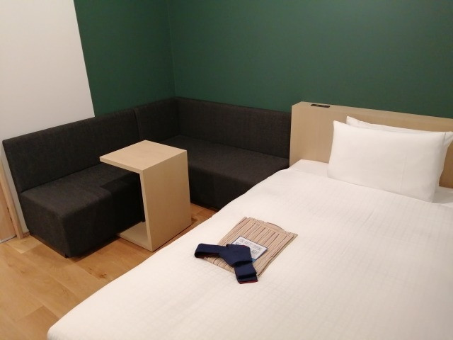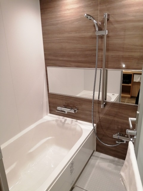 このホテルの中では一番小さいお部屋のダブルルームに2人で宿泊しましたが、ベッドがキングサイズで大きいのにそれ以外にソファがあったりしてビジネスホテルとかと比べると広めで快適でした。風呂(シャワーのみ)とトイレは別でしたが、ちょっと不便に感じたのは脱衣所がない(ベッドルーム入り口の戸を閉めて洗面所があるドアへの通路で服を脱ぐしかない)。大浴場があるので行ってみましたが、脱衣所が狭くてかなり混み合ってました。混雑状況はお部屋から確認できるシステムがありましたが、ホテルの規模と比べて大浴場はちょっと狭いので夕食後の時間帯は常に混雑していたようです。