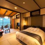 お部屋から見える夕日で心のお洗濯を。7室だけの客室はオーシャンフロントに建ち、専用の露天風呂が付いています。畳敷きにベッドを備え、寝る時も快適。団体や小学生以下は宿泊できず、静かに過ごせます。