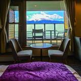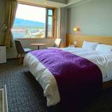「ビジネス&リゾート 登り坂ホテル」は、河口湖の南側に佇むカジュアルなホテル。富士山側の客室が多く、絶景を前にゆっくりと寛げます。夜はサウナ付きの浴場で体をほぐし、朝はバイキングで家庭的な料理を楽しんで。溶岩窯で焼いた「富士山パンケーキ」をはじめ、軽食を楽しめる併設カフェも魅力。