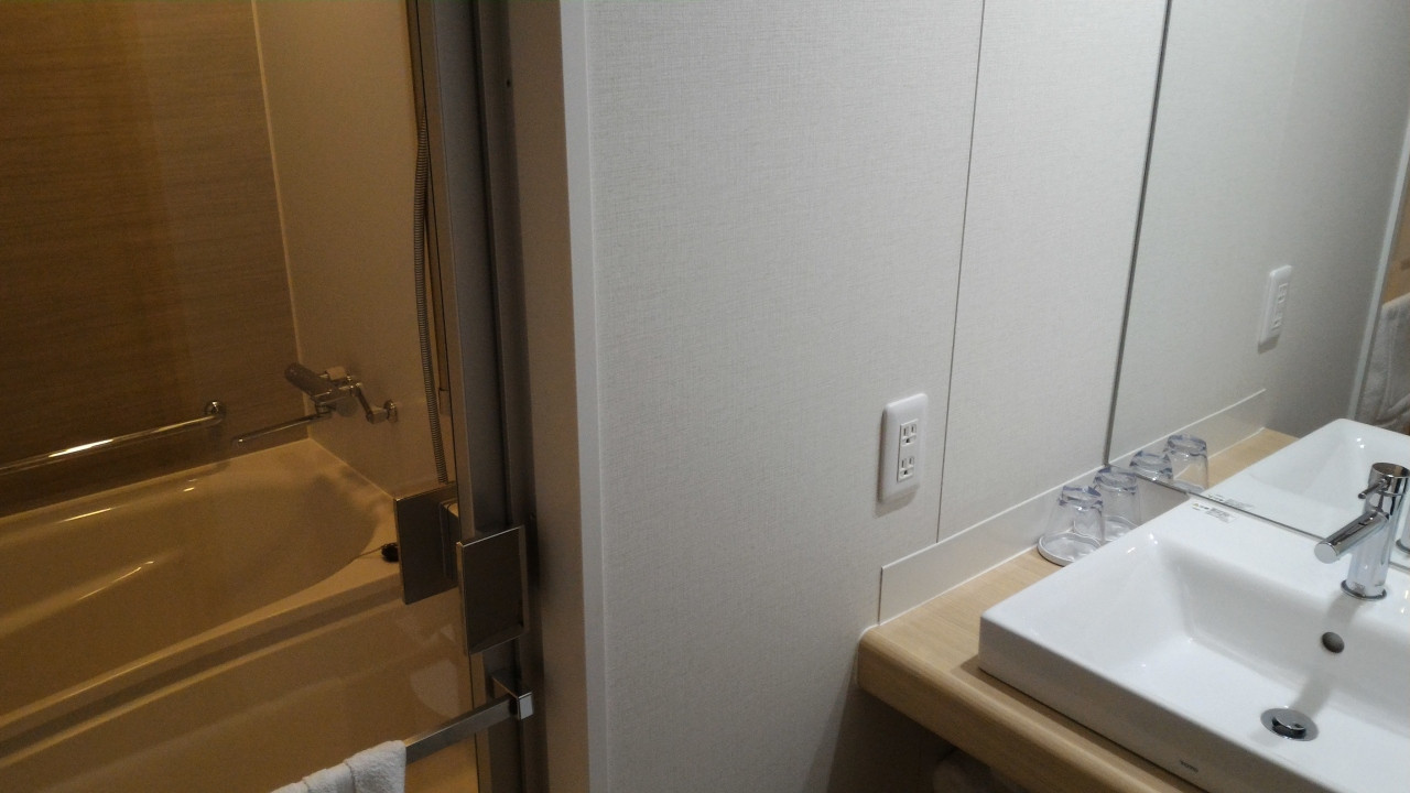 部屋は天井、ティッシュケース、ごみ箱の蓋など金ピカ仕様。部屋は広いが風呂場は富山より小さめ、寝室と玄関・水回りの間に仕切り引き戸があるのは良い。2日目の夜、大量の外国人ツアー客が同フロアーにも滞在したようで、少し音が響いた(想定内)。連泊だったので、掃除不要の札を張ったが、リネン交換、ミネラルウォーターの補給が無かったのは残念。